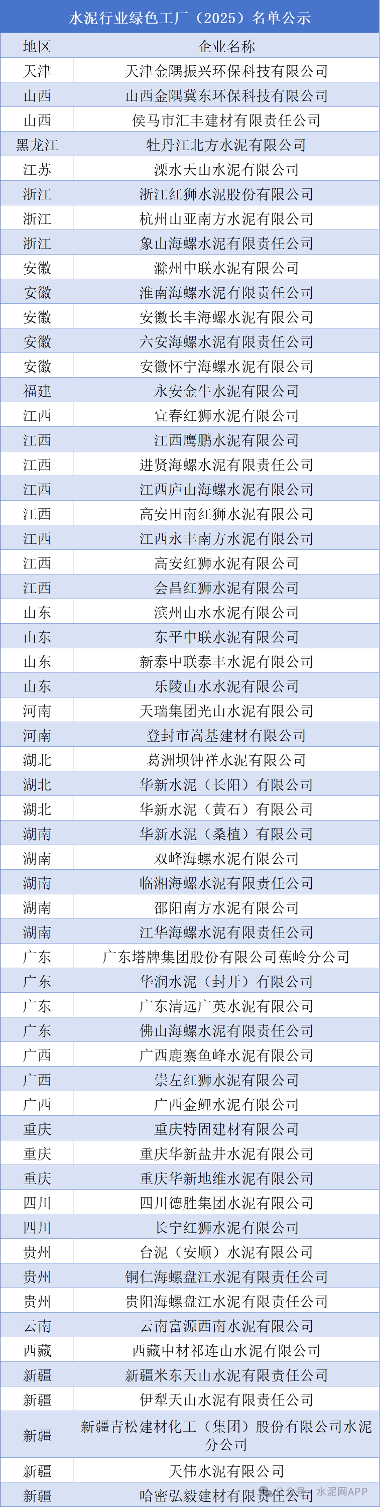 按照《綠色工廠梯度培育及管理暫行辦法》《工業(yè)和信息化部辦公廳關(guān)于開展2025年度綠色工廠推薦工作的通知》有關(guān)要求,經(jīng)省級(jí)工業(yè)和信息化主管部門推薦及專家審核,現(xiàn)將2025年度新培育綠色工廠、綠色工業(yè)園區(qū)以及動(dòng)態(tài)管理調(diào)整的工廠、園區(qū)予以公示。其中水泥行業(yè)共58家企業(yè)入選,具體如下: